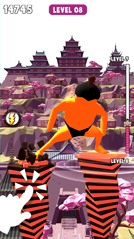 This is a fast-paced and challenging game of building towers beneath the each foot to help the sumo rise up to a platform above. Tap and hold under the foot to rise the tower beneath it, but make sure to have the other not fall too far behind or the sumo will lose his footing. On top of that, the sumo will move and stomp around at set intervals, which will damage the tower and possibly make him lose your footings, so be sure to expect it and shape the tower to react in time!