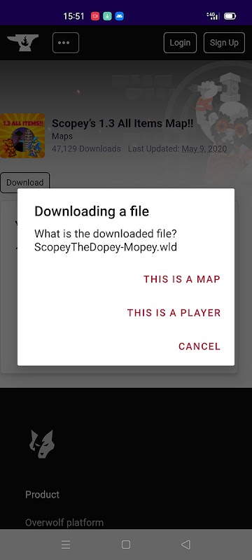 After you try to download any file, a menu will appear where you will be asked what kind of file you are downloading. Click on one of the buttons and the map or player will be automatically installed in the TR folder.