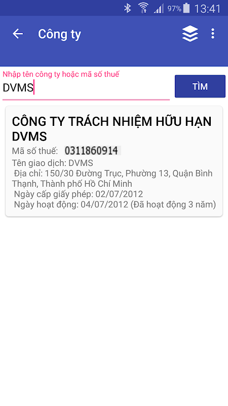 Tra cứu thông tin công ty, tổ 1.3