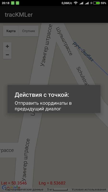 5) manuelle Auswahl der Punktkoordinaten mit Google Maps