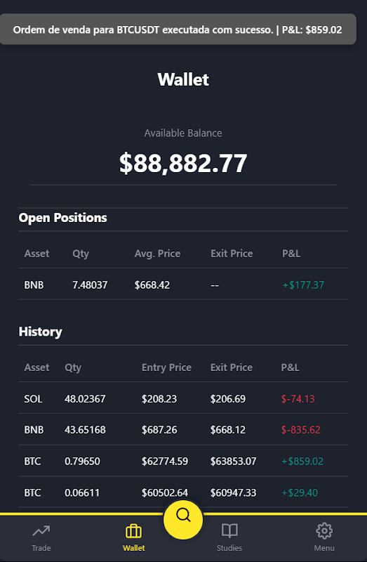 Jedes Konto (registriert oder anonym) startet mit einem virtuellen Guthaben von 100.000 $. Nutzen Sie Ihr Spielgeld, um zu kaufen, zu verkaufen, Durchschnittskostenstrategien zu testen und die Verwaltung eines Portfolios zu erlernen, ohne echte Verluste befürchten zu müssen. Das einzige Risiko besteht darin, etwas Neues zu lernen!