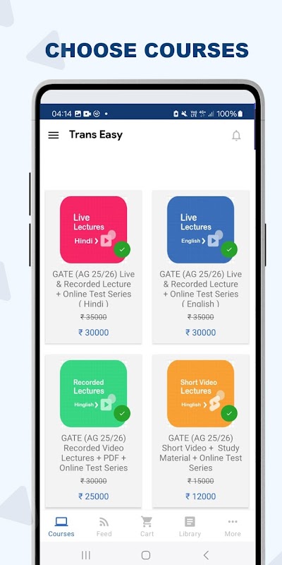 Bei Trans Easy, Indiens führender Lernplattform, sind wir stets bestrebt, hart daran zu arbeiten, Ihr Lernerlebnis zu verbessern. Nehmen Sie jederzeit und überall an Live-Kursen, Testreihen, Sitzungen zur Lösung von Zweifeln und Batch-Kursen teil. Vom Konzept bis zum Knacken ist der Trans Easy eine Komplettlösung für alle Ihre Lernbedürfnisse.