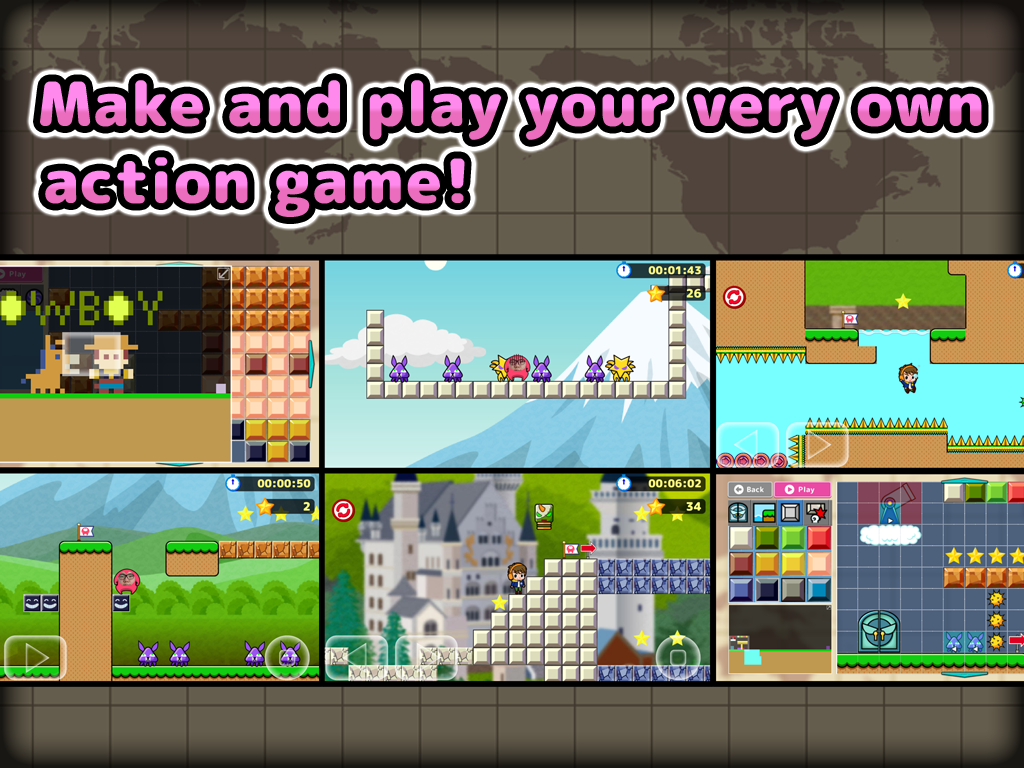 Du kannst Bodenblöcke, Ziegelblöcke und viele Arten von Fallen auswählen, um Level nach deinen Wünschen zu erstellen.
