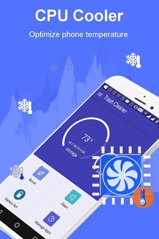Detect and clean apps that cause overheating. By phone boost and clean, this phone booster cool down mobile in seconds.