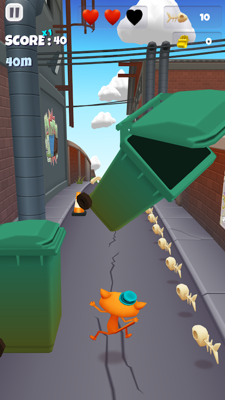 Führen Sie durch die Straßen wie Trash Katze, sammeln Gräten und Ultra spezielle Sardinenbüchsen in diesen endlosen Läufer!