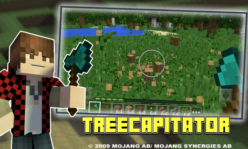 Are you tired of cutting tall trees? Does it take too much time, effort and resources? With this addon, everything will become much easier, a mod called TreeCapitator has been added that will make your life easier. It adds some interesting physics to the game, now you just have to chop down the bottommost tree block in order to chop down a full tree. The TreeCapitator mod makes cutting down trees much easier and more realistic. If you destroy the bottom block of the tree, then the remaining blocks of the tree will also be destroyed (including the leaves!).