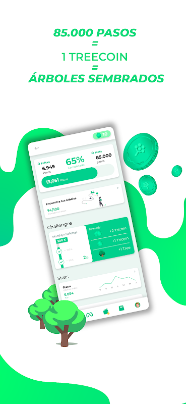 Achten Sie auf Ihren Lebensstil, gehen Sie spazieren, fahren Sie Fahrrad, trainieren Sie und meditieren Sie. Verdienen Sie Treecoins dafür, dass Sie die beste Version von Ihnen sind, und Treelife pflanzt einen Baum für jeden Treecoin, den Sie verdienen.