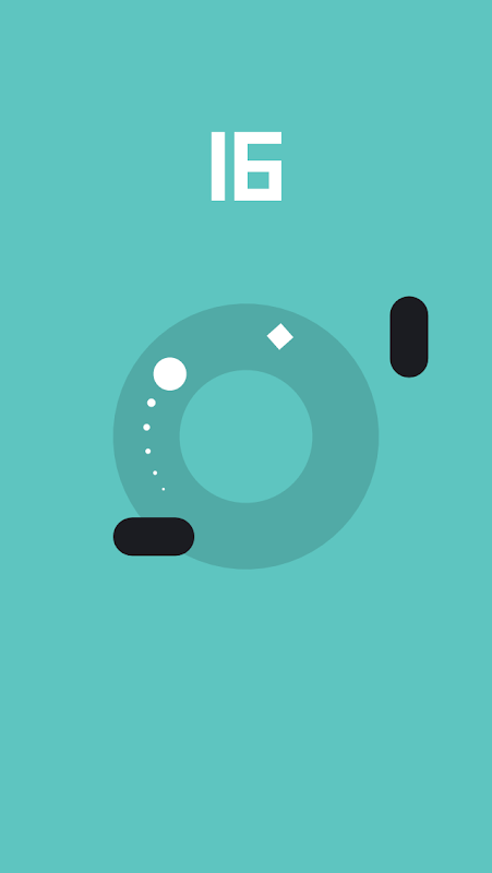 Tippe, um die Drehrichtung des Kreises zu ändern. Weiche den schwarzen Blöcken aus und sammle die sich drehenden Quadrate, um Punkte zu erhalten.