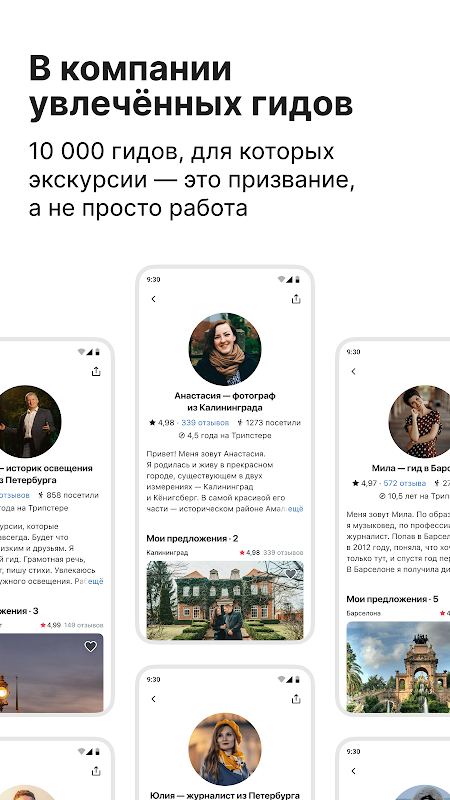 • Über 22.000 einzigartige Ausflüge – von geheimen Routen durch das Moskauer Zentrum über stimmungsvolle Spaziergänge durch Istanbul bis hin zu Touren nach Rosa Khutor