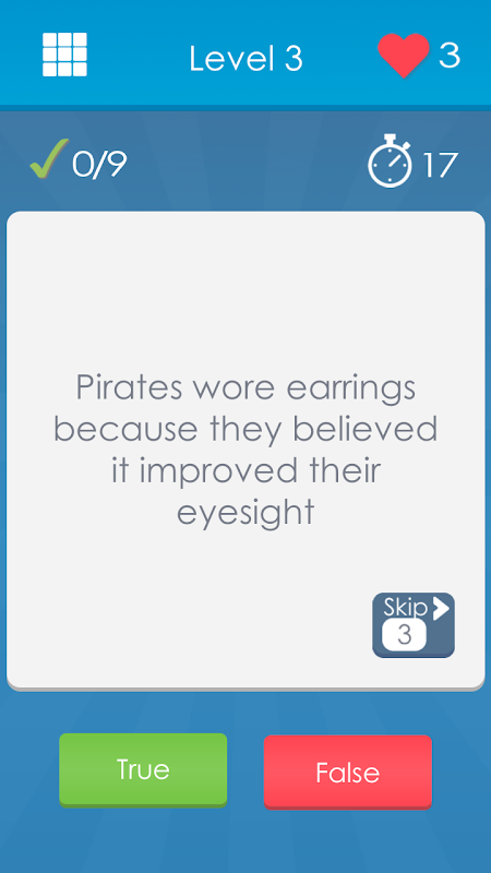 Tausende Fakten, Level mit unterschiedlichen Schwierigkeitsgraden, ansprechendes Design – all das bietet das „Wahr oder Falsch“-Fakten-Quiz! Viel Spaß beim Spielen – eine Kombination aus Spaß und Nutzen!