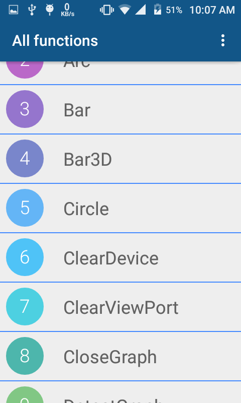 Multiple examples are available for users to understand how to use graphics in C language and create design .I'm showing you many algorithms in this app .Mainly "graphics.h" header file is use for graphics functions and initialize graphics using "initgraph()" function.