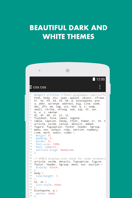 ∙ Turbo File Editor für Android bietet Syntax-Highlighting und mehr