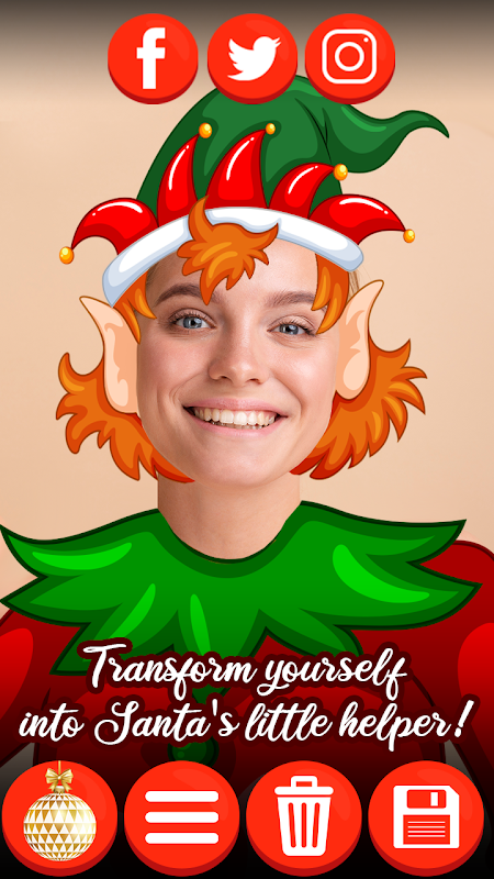Verwandle dich in den kleinen Helfer des Weihnachtsmanns! Tragen Sie eine rote oder grüne "Elfenanzug"! "Verwandle dich in einen Elfen auf dem Foto" ist eine perfekte App für diejenigen unter Ihnen, die eine lustige "Weihnachtself Kostüm" ausprobieren möchten, mit der Sie genau wie diese legendäre Kreatur aussehen! Ihre neue "Elfen-Outfit" wird perfekt zu Ihnen passen und Ihre Freunde werden eine große Veränderung in Ihrem Stil bemerken. Weihnachtskostüm Bildbearbeitung und Weihnachtself verkleiden sich! Wenn Sie "Makeover-Spiele" spielen möchten, ist diese "Elf Fotokabine" mit "Weihnachtsaufkleber für Fotos" genau das, was Sie brauchen, um sich für die Ferienzeit zu verkleiden! Weihnachtsfotobearbeitungseffekte und Weihnachtsaufkleber für Bilder! Dein "Weihnachten verkleiden sich" -Abenteuer wird Spaß machen wie nie zuvor und deine neue "Weihnachtsfotomontage" wird in sozialen Netzwerken Lachen verbreiten! Verwandle dich in einen Elfen auf dem Foto bringt den Geist des Feierns in Ihren Alltag, sodass Sie mit Ihrem Elfenkostüm brillante Ideen für eine einzigartige Kostümparty erhalten! Weihnachtsfeier Aufkleber und Happy New Year Thema! Mit dieser "Frohe Weihnachten FotoEditor" können Sie dem Foto Text hinzufügen oder Ihre Weihnachtsbotschaften eingeben und Ihre personalisierte Neujahrsgrußkarte erstellen! Frohe Weihnachten, Bildbearbeitung und Weihnachtscollage! Also lade diese "Weihnachtsfotomacher" kostenlos herunter und werde ein Elf in Bildern!