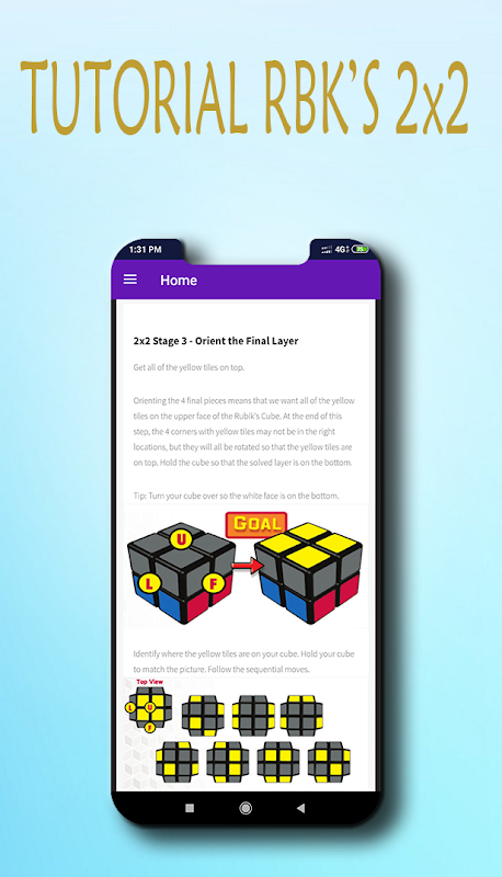 This application is a tutorial to solve the 2x2 cube problem, especially for beginners or if you just want to learn it.