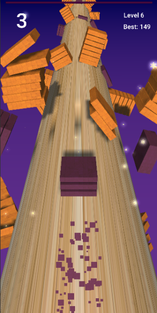 Wenn Sie Twist Stack Match 3D spielen und mit der falschen Farbe stoßen, sinkt die Menge Ihrer Blockstapel.