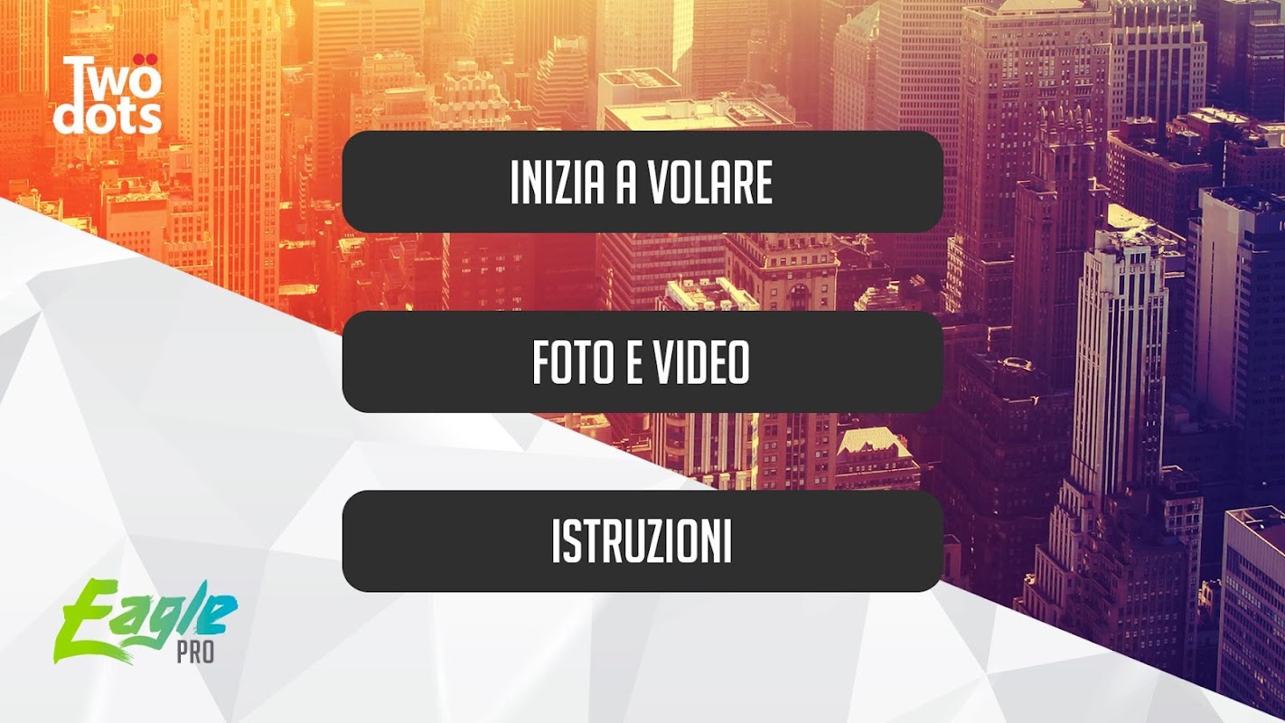 Eagle Pro è un quadricottero per riprese aeree dotato di gimbal su due assi regolabile in remoto e camera HD 720p. Dotato di telecamera HD 720p Eagle PRO permette di effettuare riprese in volo di alto livello in tempo reale tramite smartphone. L'App ti permetterà di visualizzare in FPV direttamente sul tuo smartphone le immagini della camera o potrai pilotare direttamente il tuo drone tramite le semplici funzioni dell'App TwoDots Eagle Pro.