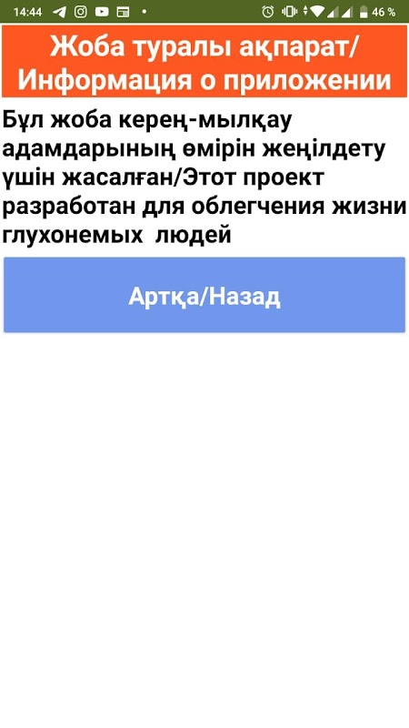 Если во время отсутствия интернета, особенным людям казалось, что они такие одни единственные, без поддержки и единомышленников, то сейчас, в век информационных технологий - социальные проблемы поднимаются и решаются на высшем уровне. В Республике Казахстан наличие слабослышащих и глухонемых людей распространена, ежедневно наша команда встречает граждан с этой особенностью, потому идея создания приложения, с помощью которого обе стороны будут понимать друг - друга, а главное, с легкостью общаться - загорелась в наших умах. Программа, которая в считанные секунды переводит прямую речь в текст, который разделён знаками препинания и понятен читающему, так же зачитывает написанное для скорости общения. Человек со слуховыми проблемами и человек без них - смогут разговаривать без каких - либо препятствий. Наше приложение имеет 5 скринов: распознание речь, в котором можно выбрать функции как «перевести» и «удалить», а так же нажав кнопку с названием программы можно перейти на скрин 3, где с помощью микрофона можно услышать написанное или прочитать сказанное. Остальные два скрина рассказывают о программе и самих разработчиках. Отличительной особенностью от других программ является двуязычность. Мы создали первую программу на казахском и русском языках, специально для граждан нашей страны, так как подобных приложений не наблюдалось. Слабослышащая часть населения Казахстана чувствует себя забытой, так как зная лишь казахский язык, они не попадают в группу людей для которых создаются множество подобных приложений. Дизайн программы будет удобен для всех пользователей, большой и видный шрифт, приятные глазам цвета, специальное оформление, а так же пользователям будет максимально понятно как и где все устроена, что огромный плюс, ведь приложением будут пользоваться не только продвинутая молодежь, но и взрослое население, которому необходимо детально четкое объяснение. Наша программа чётко и безошибочно распознаёт речь, и так же понятно производит вслух написанный текст, что значит отсутсвие ошибок в разговоре и каких - либо неприятных моментов в настройке.