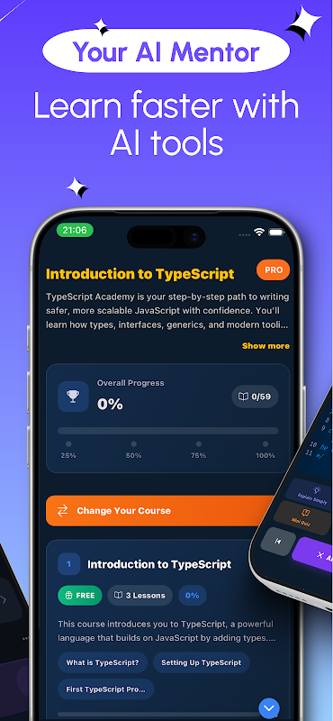KI-Integration: Die KI der App gibt Ihnen personalisiertes Feedback, hilft Ihnen bei der Codegenerierung und korrigiert Fehler, wodurch das Lernen schneller und effektiver wird. Unabhängig davon, ob Sie den TS-Editor oder die TypeScript-IDE verwenden, unterstützt die KI Ihr Lernen mit maßgeschneiderten Lösungen.
