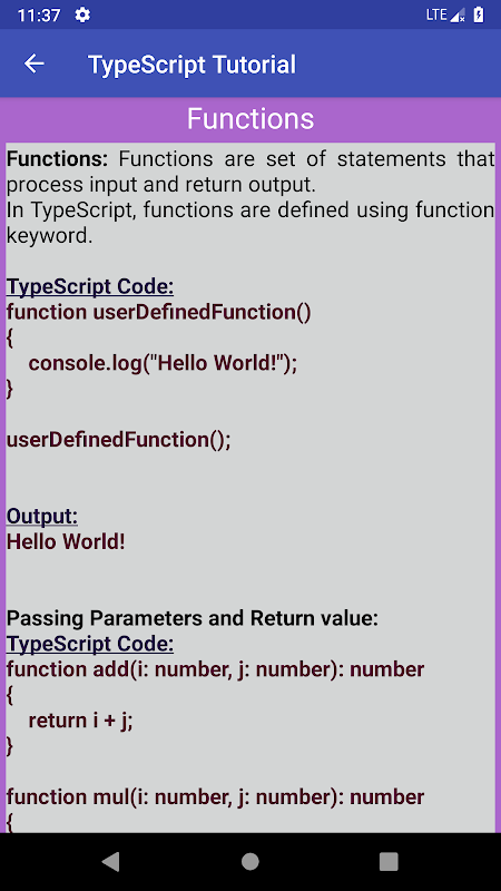 Mit APKPure können Sie TypeScript Tutorial APK einfach und sicher mit Signaturüberprüfung herunterladen.
