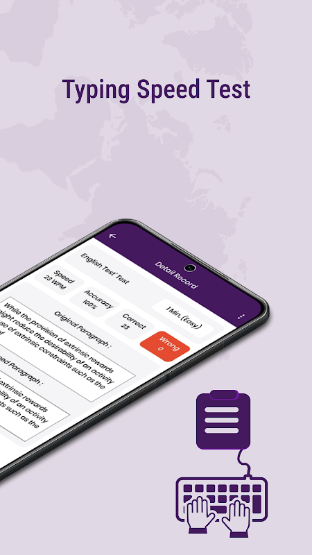 ➛ Machen Sie sich mit dieser Tippgeschwindigkeitstest-App mit der Tastatur oder einem Tastenfeld vertraut und beginnen Sie schnell mit dem Tippen.