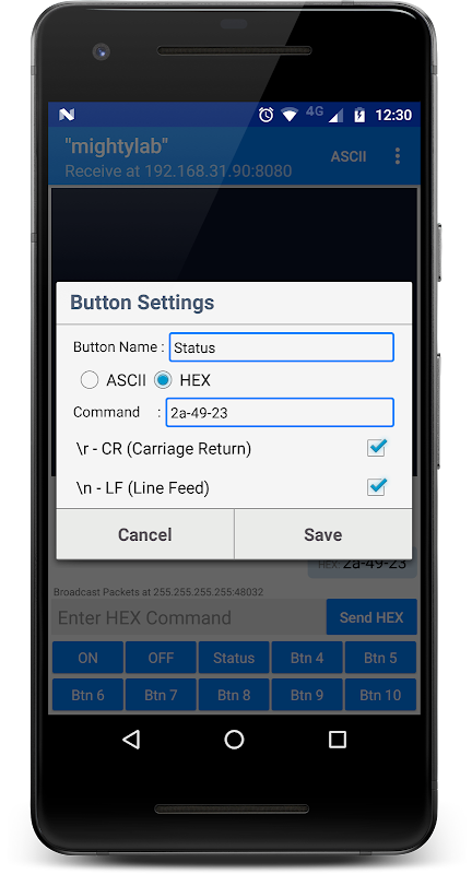 - Auswahl für \ r \ n am Ende der Pakete zu senden.