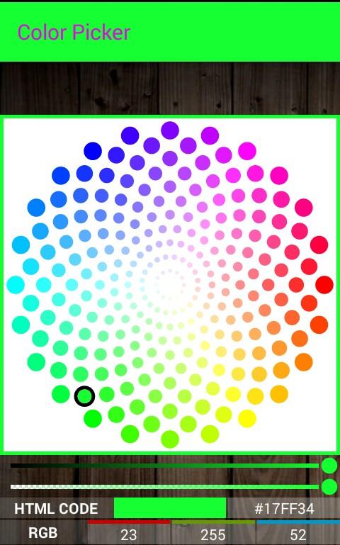 Picked Color can observe on Action Bar (Menu Bar) or Below color wheel and Picture