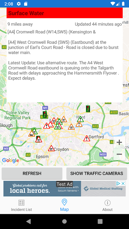 - Sie können schnell sehen, wie weit der Vorfall von Ihnen entfernt ist, den Straßennamen, die Art des Vorfalls und wann die Vorfallinformationen aktualisiert wurden.