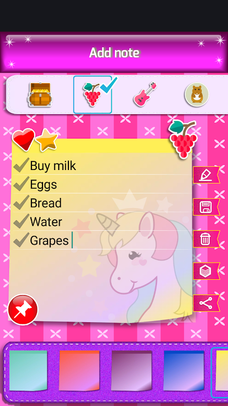 ★ Unicorn Notepad bietet zwei grundlegende Notizformate, eine Textoption und eine Checklistenoption. Fügen Sie beliebig viele zu Ihrer Hauptliste hinzu, die bei jedem Öffnen des Programms auf dem Startbildschirm der App angezeigt wird.