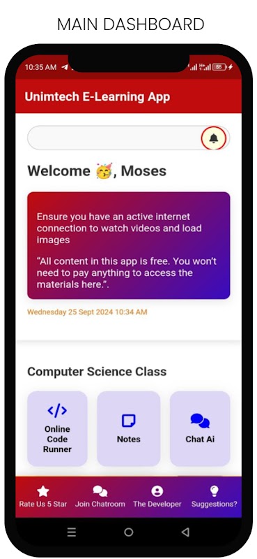 UNIMTECH E-Learning ist eine umfassende Lern-App, die von Joseph Deen Sesay für Informatikstudenten entwickelt wurde, um einen einfachen Zugang zu grundlegenden Programmierkenntnissen zu ermöglichen. Die speziell auf Studierende zugeschnittene App deckt Schlüsselthemen in C++, HTML, CSS, Python und C# ab und hilft Lernenden dabei, eine solide Grundlage in diesen Sprachen aufzubauen.
