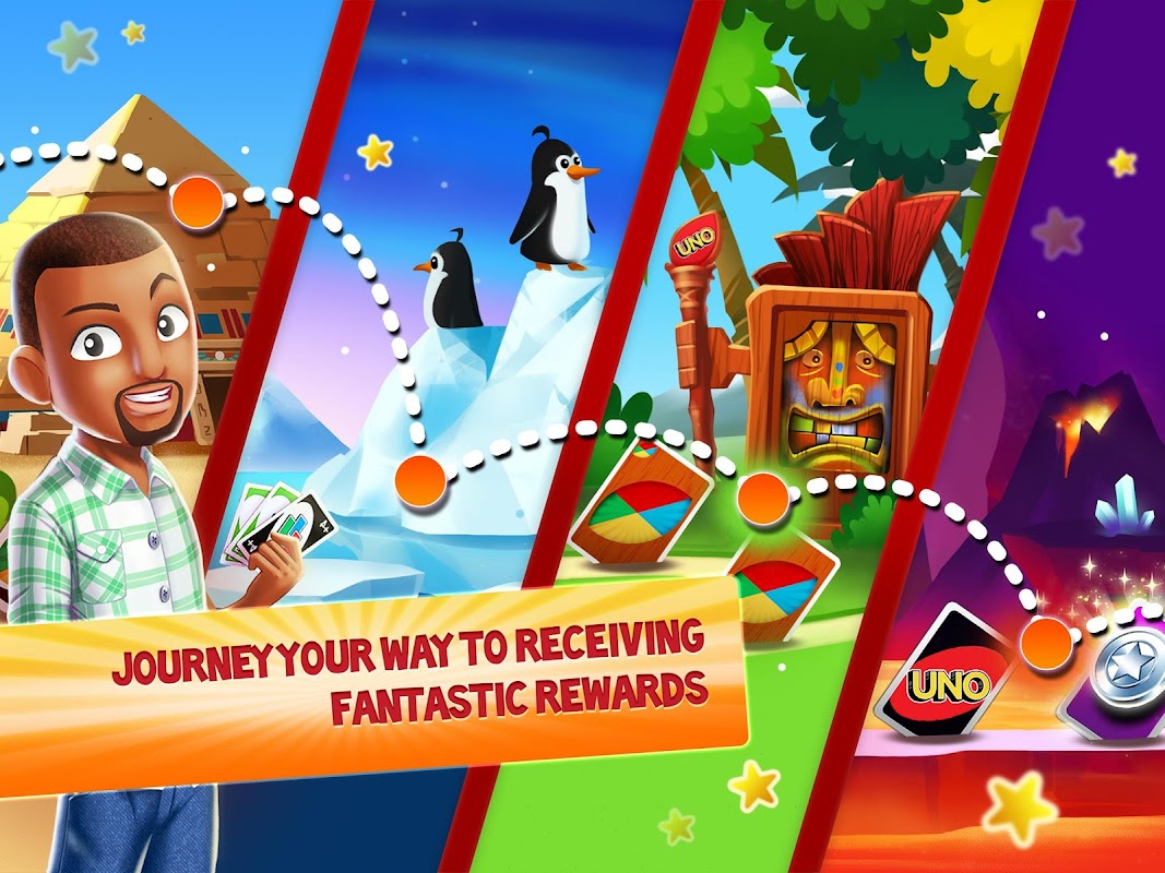 Das Spielen von UNO mit Freunden, Familie und den Millionen von Fans weltweit war nie einfacher! Tritt einer der größten mobilen Spiel-Communitys bei und genieße gratis Mehrspielerspiele, brandneue Spielmodi und Turniere, die dich auf einem ganz neuen Level ""UNO"" rufen lassen!