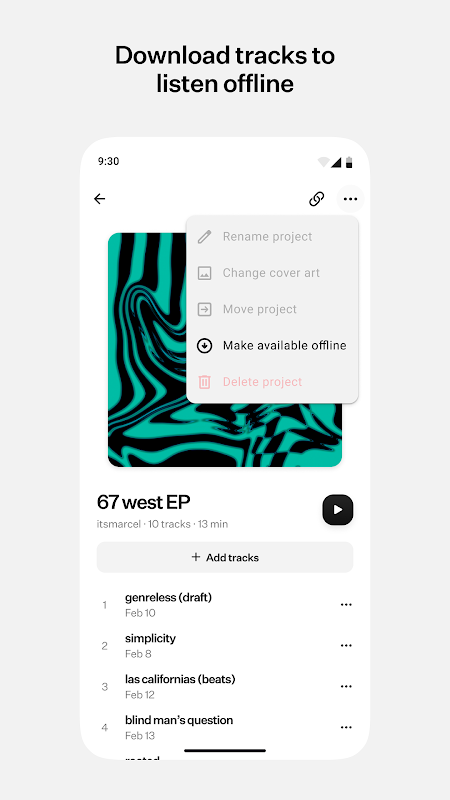 • Deine Tracks in Projekten und Ordnern organisieren und zwischen deinen Android-, Web- und iOS-Geräten synchronisieren.