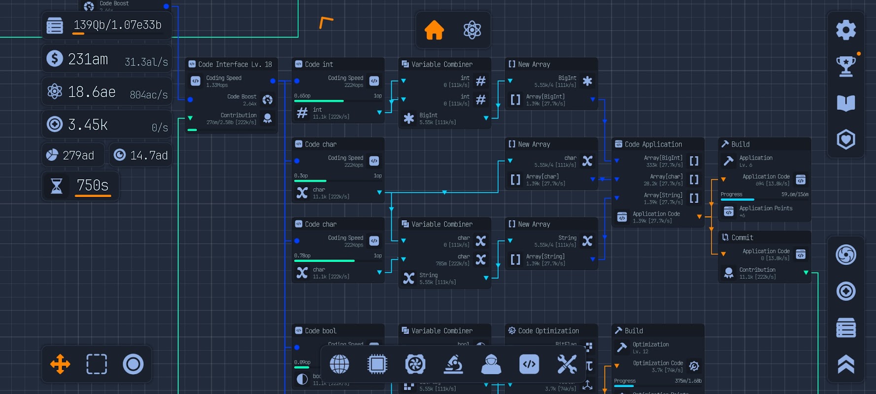 Willkommen in den Laboren! In Upload Labs musst du das Universum vor dem unvermeidlichen Wärmetod retten. Nutze deinen Einfallsreichtum und deine Fähigkeiten, um optimierte Systeme mithilfe eines knotenbasierten Systems zu erstellen. Diese Knoten sind fensterartige Schnittstellen, die Komponenten und Prozesse in deinem Computer darstellen. Verbinde Knoten von Ausgabe zu Eingabe, um Ressourcenfluss und Datenpipelines zu steuern.