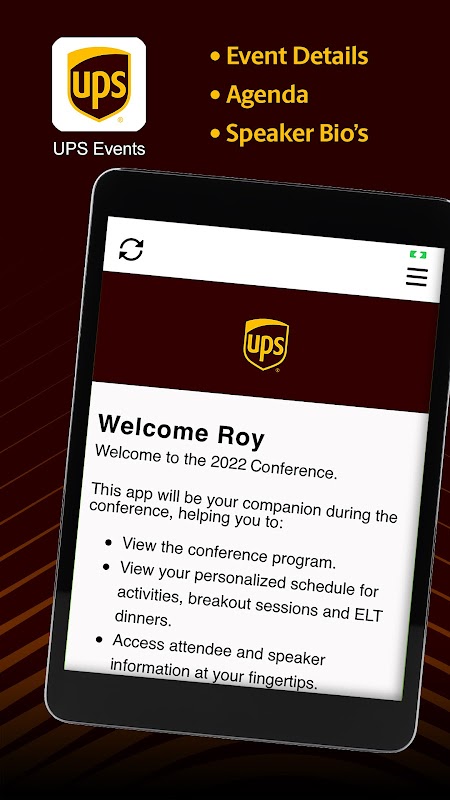 UPS Events ist die offizielle mobile Anwendung für UPS Konferenzen und Veranstaltungen. Diese mobile Anwendung bietet UPS-Kunden, Lieferanten und UPSern, die an Konferenzen teilnehmen, eine personalisierte Tagesordnung und Informationen über die Veranstaltung.