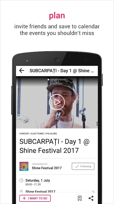 And another cool and unique feature: subscribe to our Urby channels - “Concerts in my city”, “Music festivals in Romania”, “Foodie events”, “IT & Tech events”, etc. and create your personalised events stream within the app.