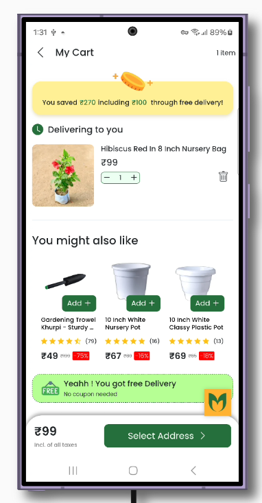 Urvann ist eine Online-Gärtnerei, die eine kostenlose Lieferung von mehr als 5.000 Pflanzensorten, Garten- und Heimdekorationsprodukten am nächsten Tag ab nur Rs. 50.000 anbietet. 7!