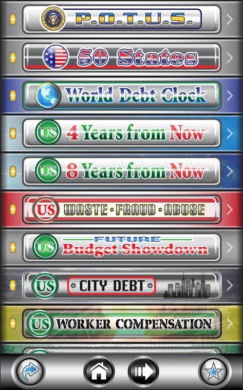 Die US Debt Clock .org App gibt Ihnen in Echtzeit einen Einblick in die wichtigsten Wirtschaftsdaten, die die Finanzlage der US-Bundesregierung, der 50 Staaten und der Welt mit über 3000 bis hin zu den zweiten Datenfeldern zeigen.