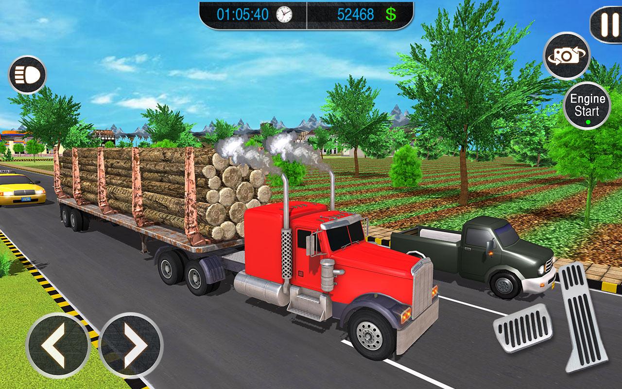 LKW-Fahrspiele 2018 haben normalerweise einen oder zwei Lastwagen für Offroad-Fahren, aber in diesem großen Lastwagenspiel haben Sie mehrere Lastwagen zum Transportieren von Frachtgütern in andere Bereiche. In einer Mission müssen Sie den hölzernen Holzfällerwagen in die moderne Stadt für den Bau von Häusern und Garagen bringen. Seien Sie der beste Lastwagenfahrer von Transportspielen, indem Sie auf der belebten Autobahn der Hauptstadt fahren.