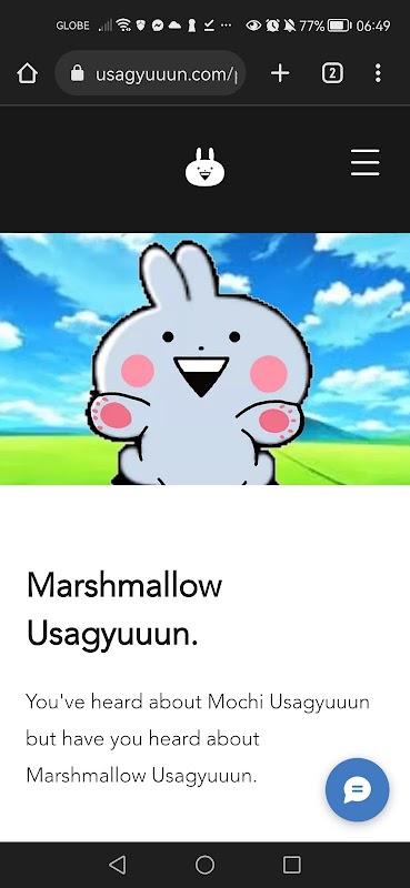 ein Fanbase-App-Blog für Usagyuuun-Fans, Credits für S-San und Minto-Aufkleber. App unter Fair-Use-Gesetz.