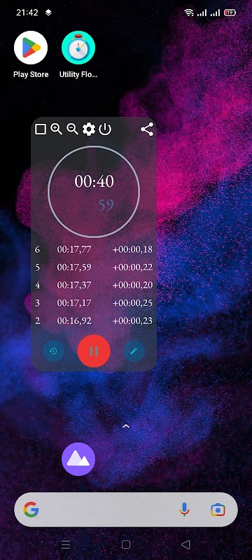 Diese Stoppuhr ist die Pro-Version von „Utility Floating Stopwatch“ und komplett werbefrei.