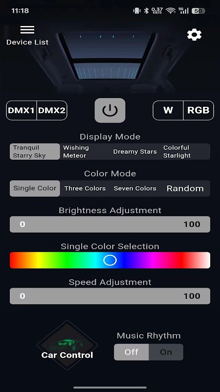 Steuern Sie die Ambientebeleuchtung des Sternenhimmeldachs des Autos
