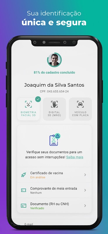 Crie sua conta e esqueça a burocracia de filas e novos cadastros. Acesse apenas com sua biometria facial.