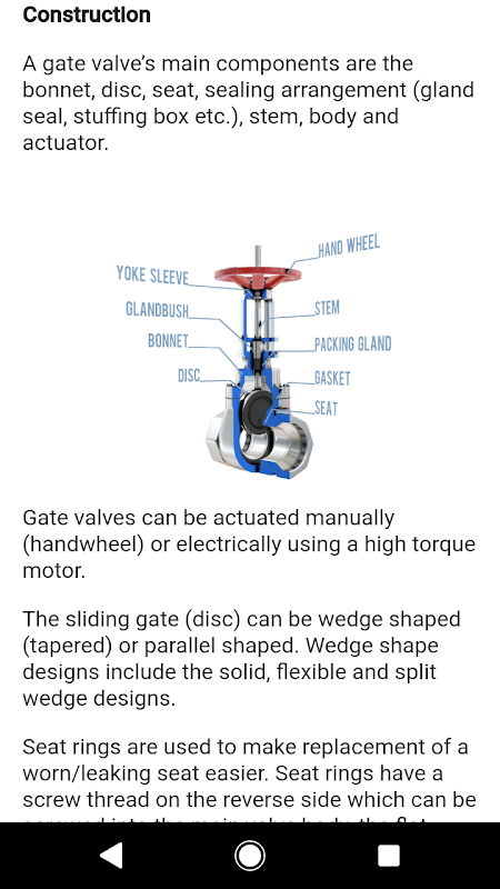 Diese App enthält detaillierte Informationen über die Kugel-, Butterfly-, Check-, Membran-, Gate-, Globus-, Nadel-, Quetsch-, Steck-, Entlastungs- und Sicherheitsventile! Die App enthält auch Informationen zu den vier verschiedenen Arten von Hauptventilantrieben (elektrisch, hydraulisch, mechanisch und pneumatisch).
