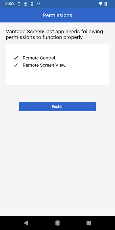 Vantage ScreenCast ist eine Fernsteuerungs-App, mit der Sie Ihren Bildschirm freigeben können. Es ermöglicht dem Administrator auch, technischen Support für Android-Geräte aus der Ferne bereitzustellen.