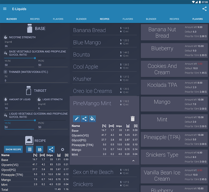 Liquid Mischer: hilft dir beim erstellen eigener Liquid-Rezepte. Speichere deine Rezepte und teile sie.