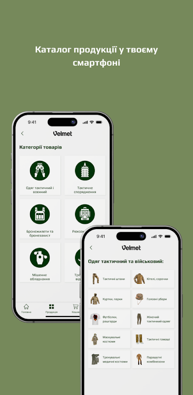 Velmet ist Ihr bester Partner bei der Auswahl militärischer Ausrüstung. Laden Sie die Anwendung noch heute herunter und werden Sie Teil der Elitewelt der Militärausrüstung des ukrainischen Herstellers.