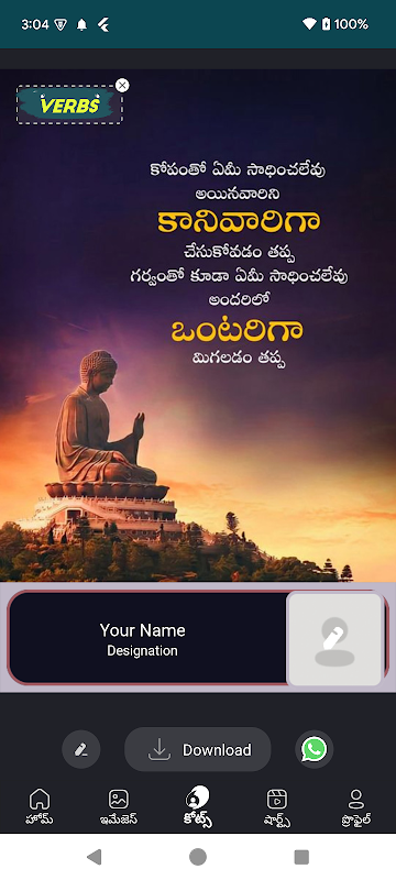 Verben besteht darin, täglich Guten-Morgen-Nachrichten, Zitate, Festivalnachrichten oder -zitate, Festivalnachrichten mit Ihrem Namen und Foto zu teilen. Bei der Verbs App geht es nicht nur darum, Inhalte zu konsumieren – es geht darum, sie zu personalisieren, um sie einzigartig zu machen. One-Stop-Lösung, bei der Sie alles mit einem einzigen Klick finden; Von der Guten-Morgen-Nachricht bis hin zu Festivalzitaten. Fügen Sie Ihren Namen und Ihr Foto hinzu, um Zitaten eine persönliche Note zu verleihen