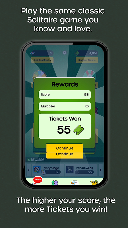 - Verdiene Tickets am Ende jedes Spiels.