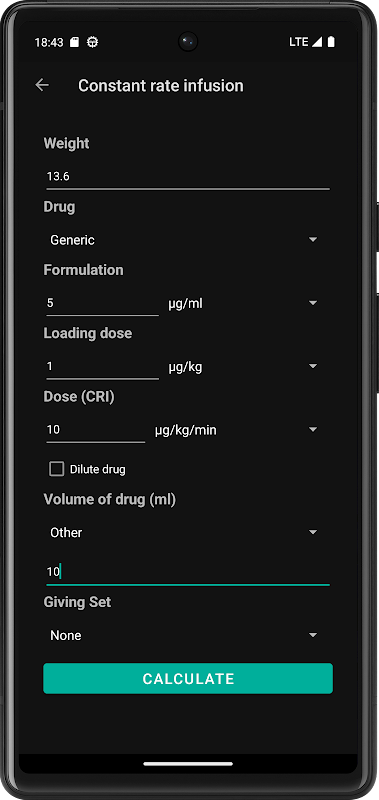 Vet Calculator Plus ermöglicht Ihnen auch, die Berechnungen zu speichern und zu teilen sowie die Änderung der umfangreichen Palette von Benutzeroptionen, einschließlich der bevorzugten Einheiten des Benutzers, z. die Option, in kg oder lb zu arbeiten. Benutzer können ihre eigenen Medikamente aus der App hinzufügen. Ergebnisse können als PDF gespeichert, versendet oder ausgedruckt werden. Die App unterstützt dunkle und helle Themen.