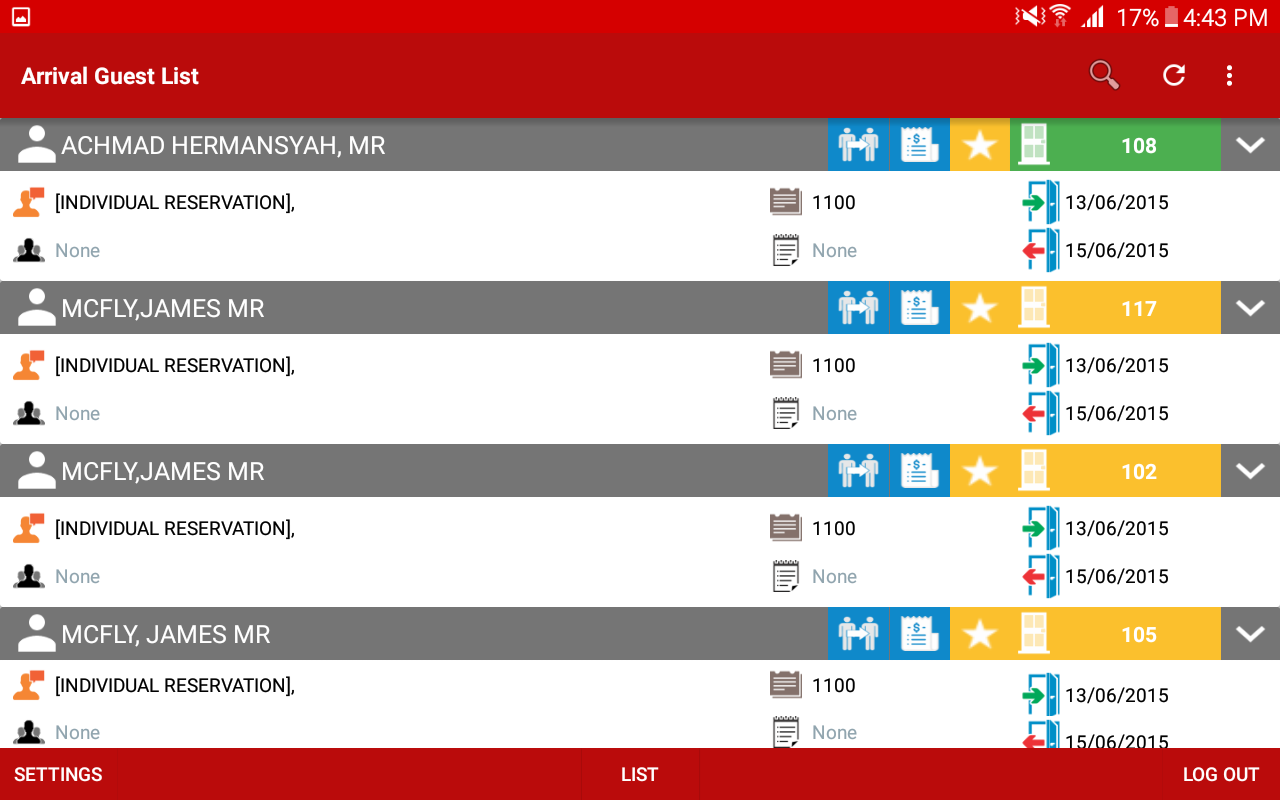 - Ankunfts-Gästeliste, Inhouse-Gästeliste, heute voraussichtliche Abreise-Gästeliste anzeigen