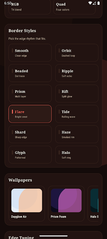 Vibe EdgeAura verwandelt Ihren Bildschirm in eine leuchtende Leinwand. Erzeugen Sie lebendige Randbeleuchtung, mischen Sie Farben und passen Sie jedes Detail an Ihre Stimmung an. Ob Punch-Hole oder Curved-Display – die Leuchtkraft bleibt kräftig und präzise.
